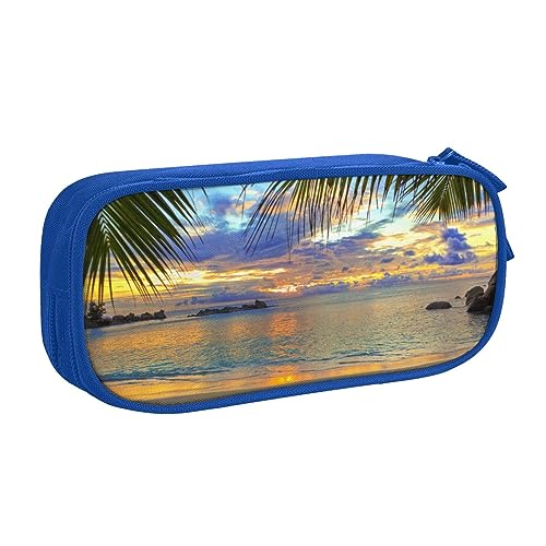 Rumbling Federmäppchen mit Ozeanpalmenmotiv, bedruckt, Make-up-Tasche, Schmuckkästchen, tragbare Aufbewahrungsbox, Reise-Schmucketui, Schwarz, blau, Einheitsgröße, Federmäppchen