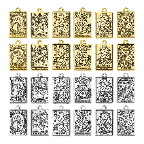 DICOSMETIC 48 Stück 6 Stile Mystische Tarot Anhänger Glücksrad/Liebhaber/Welt/Stern/Luna/Sonne Glücksbringer Amulett Anhänger Wahrsagerei Legierungsanhänger Für Die Schmuckherstellung
