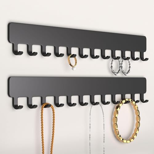 Josmimic Kettenhalter Schmuckaufbewahrung Wand - Robuster Schmuck Organizer für Halsketten, Armbänder und Ohrringe - Platzsparende Lösung, Einfache Klebemontage, Metall, Schwarz