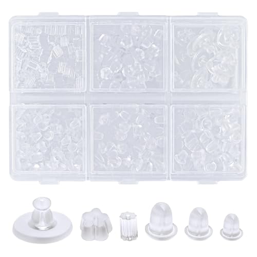 MOLENCO 600 Stück Verschlüsse für Ohrringe, Silikon, 6 Stile, hypoallergen, Kunststoff, transparent, verschiedene Größen, für Basteln und Schmuckherstellung