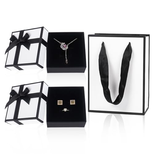 Nwvuop Schmuck Geschenkbox mit Geschenktasche, 7.5× 7.5× 3.5cm Klein Geschenkschachtel mit Deckel für Ring Kette Armband Geschenkverpackung