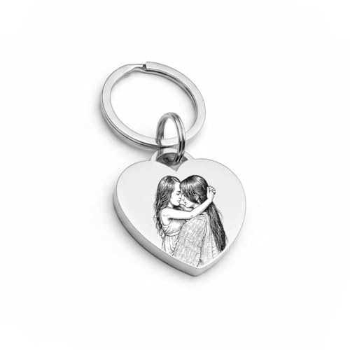 Golden Paw Foto Schlüsselanhänger personalisiert mit Gravur | Geschenk für Damen, Herren, Freundin, Oma, Opa & Kind | Bild-Gravur & Spruch auf Rückseite - Edelstahl (Silber)