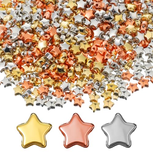 TIESOME 600 Stück Zwischenperlen Stern, 6mm Pentagramm Abstandsperlen 3 Farben Stern Perlen Bastelperlen Sternform Spacer Perlen Beads Lose Perle Für Diy Schmuckherstellung Bracelets Anhänger