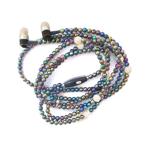 LUCKDANO Schmuckperlenhalsketten-Ohrhörer mit Mikrofon – Stilvolle In-Ear-Kopfhörer für Mädchen – 3,5-mm-Kabel-Headset – Geschenk für Damen (Mehrfarbig)