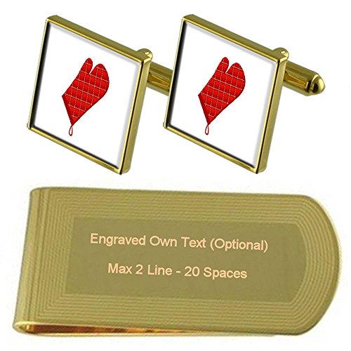 Select Gifts Kochen Ofen Handschuh Gold-Manschettenknöpfe Geldscheinklammer Gravur Geschenkset