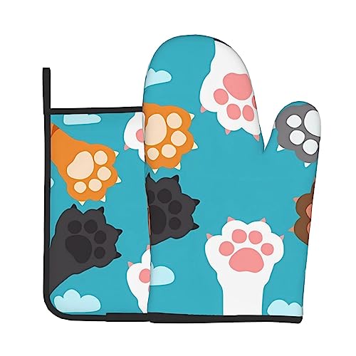 Ofenhandschuhe und Topflappen, Motiv: Katzenpfoten, hitzebeständig, Ofenhandschuh und Topflappen, Küchenhandschuhe für die Mikrowelle, zum Backen, Grillen, Kochen, Ofenhandschuhe