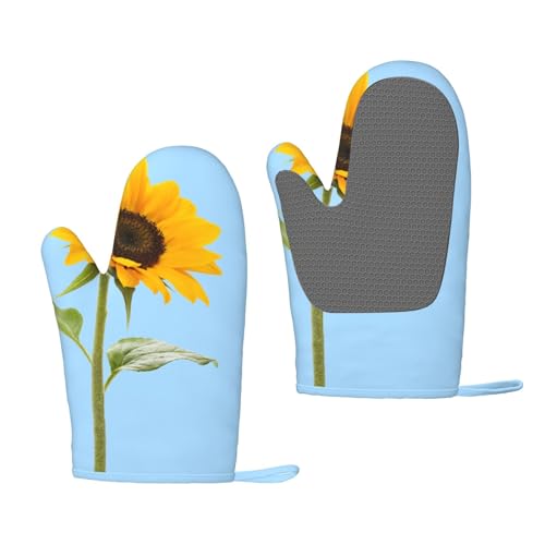 Bloom Sunflower Silikon-Ofenhandschuhe – hitzebeständige Grillhandschuhe mit Fingern, wasserdicht, rutschfest, Ofenhandschuhe, Küchenhandschuhe zum Backen, Grillen, Grillen