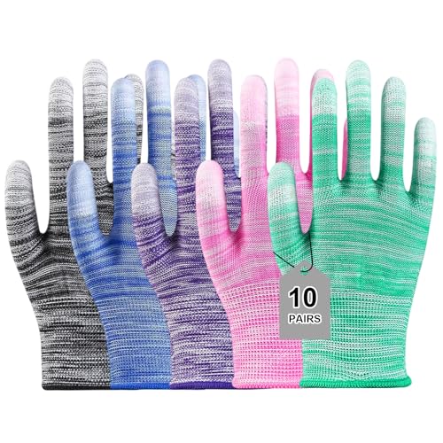 10 Paar Gartenhandschuhe Damen Dornenfest Mehrfarbig, Arbeitshandschuhe Damen Handschuhe Garten, Atmungsaktiv Schutzhandschuhe Arbeitshandschuhe mit Latex Beschichtet, für DIY, Haus Gartenarbeit
