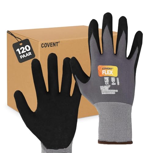 Covent Flex Arbeitshandschuhe Herren Gr 10 (120-er Set) - Montagehandschuhe Kategorie II - EN388 Bauhandschuhe für Bauherren, Mechaniker und Monteure