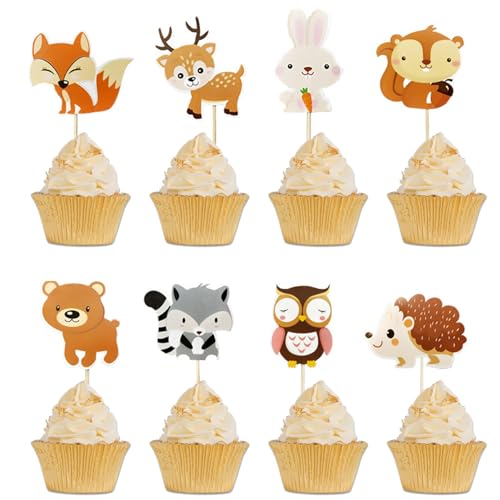WUBAYI 24 Stück Waldtier-Dekoaufstecher für Cupcakes - Essbare Dekoration für Kindergeburtstage & Babyfeiern