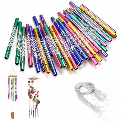 DIYCUT 50 Stück Windspiel Bastelset, Aluminium-Klangröhren, Windspiel Röhren, mit 20 Silberfäden (Farbig), für Garten-Deko, Halloween-Windspiels & Kinderzimmer-Accessoires