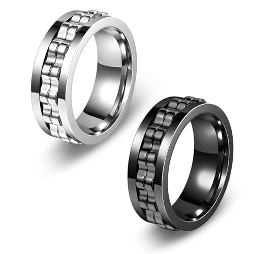 ZexJpr Anti Stress Ring, 2 Fidget Set in Edelstahl Und Silber, Drehbare Angst Ringe Für Erwachsene, Fashion Accessoire Geschenkidee, Geeignet Als Feiertagsgeschenk, Kreatives Geschenk