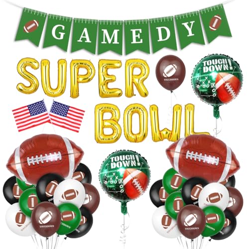 TaleMoon Super Bowl Deko,40 Stück American Football Deko,Superbowl Party Deko,Snack Stadion Dekoration Deko Set, "SUPERBOWL","GAMEDAY“ Girlande,USA Flaggen, Folien-Luftballons,Luftballons