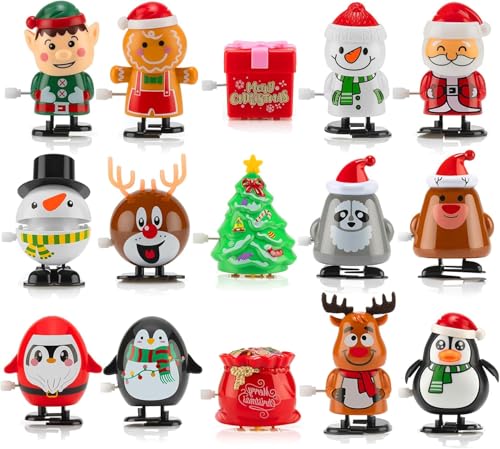 LATERN 15 Stück Weihnachts Aufziehspielzeug, 5CM x 7CM Weihnachts Uhrwerkspielzeug Mini Weihnachtsmann Schneemann Pinguine Springendes Laufspielzeug für Weihnachts Strumpffüller Party Tütenfüller
