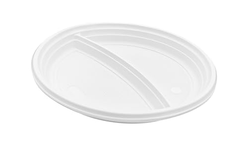 Trendsky 200 Stück Mehrweg 2-geteilt Menüteller Ø22 cm Robust, Spülmaschinen- und Microwellen geeignet, Plastik Teller Kunststoff Geschirr Partyteller zwei geteilt reusable