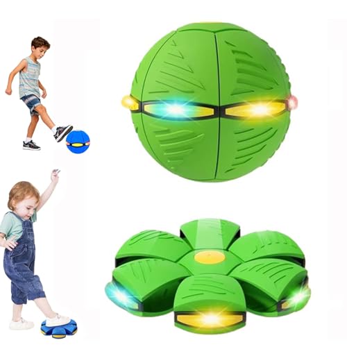 Flanliy Magischer Hüpfball Kinder, Fliegende Untertasse Spielzeugball mit 2 Frei Wechselbaren Formen und 6 Lichtern, Transformierbar Hüpfball geeignet für Eltern-Kind-Interaktion (Grün)