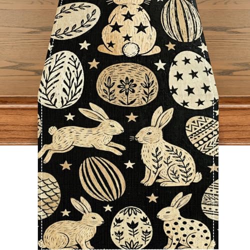 Afritee Hasen Tischläufer Ostern Dekoration, Schwarz Ostereierr Ostertischdecke Tischdeko Party Wohnzimmer Dekor, Frühling Küche Tischläufer Table Runner Tisch Dekoration 40*140cm