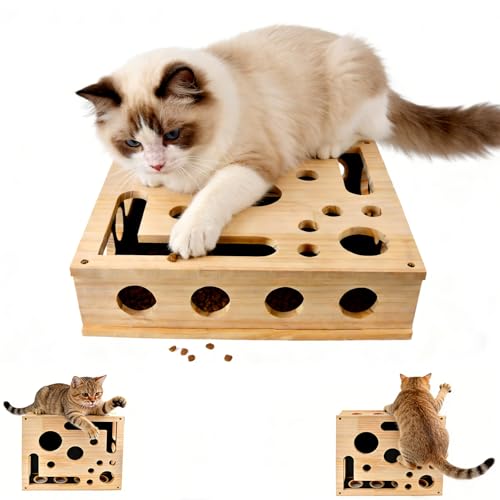 Katzen Krallenpflege Spielzeug, 30*25CM Kratzpuzzle Spielbox Holz Katzen, Interaktives Katzenspielzeug Spielzeug, Katzenspielzeug Kratzen Krallenpflege Boxs, Kratzbrett Für Scharfe Katzenkrallen