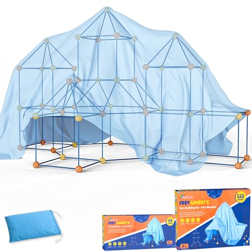 Tiny Thinkers Fort Bausatz XL + Erweiterungspaket, 191 Teile, Höhle Bauen Kinder, Stecksystem Spielzelt Indoor & Outdoor, Konstruktionsspielzeug Kreativset, Inkl. Tasche & E-Book, Ab 5 Jahren