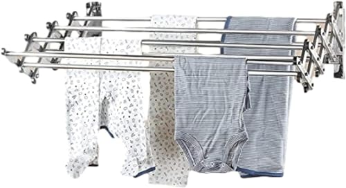 FBSHAD Faltbarer, an der Wand montierter Verstellbarer Wäscheständer, änder mit Edelstahlstangen, Handtuchhalter