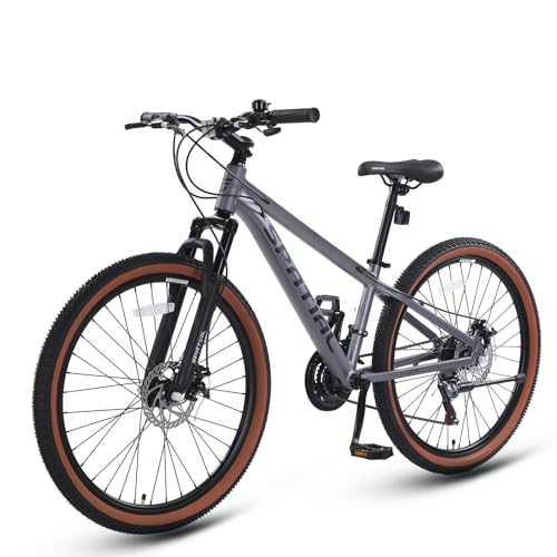 SPATIAL Mountainbike, 24/26/27,5/29 Zoll, Outdoor-Fahrrad, 21/8 Gänge, Aluminiumrahmen | Doppelscheibenbremsen, Verstellbarer ergonomischer Sattel für Männer, Frauen (Silber, 26 Zoll)