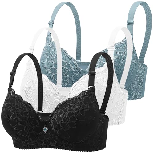 Klassische Spitzen BHS Damen mit Bügel 3er Pack Push Up BH mit Verstellbarem Bustier Komfort Nahtlos BH Set Gepolstert Sexy Trainings Schlaf Sport BH Unterwäsche Alltag Yoga Joggen