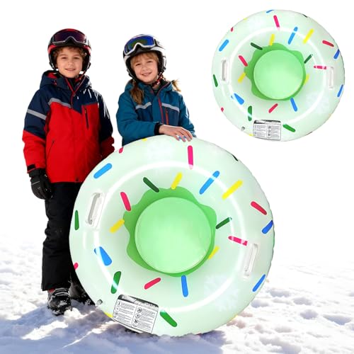 Aufblasbare Schlitten, SilverCherry Aufblasbare Schneereifen, 80cm Snow Tube Frostschutz Schlitten mit Griffen, Klappbar Schneereifenfahren für Kinder und Erwachsen (Donut)