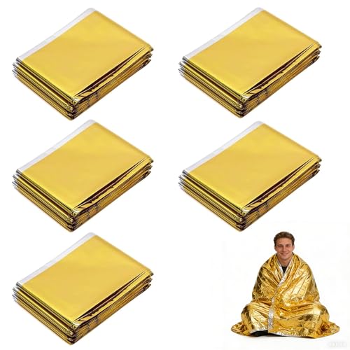 5er-Pack Rettungsdecken 210x160 cm – Gold/Silber Alu Thermo Wärmedecken für Erste Hilfe, Camping, Auto & Outdoor – Reißfest, Wasserdicht, Ideal für Survival Kits, Wandern & Skifahren