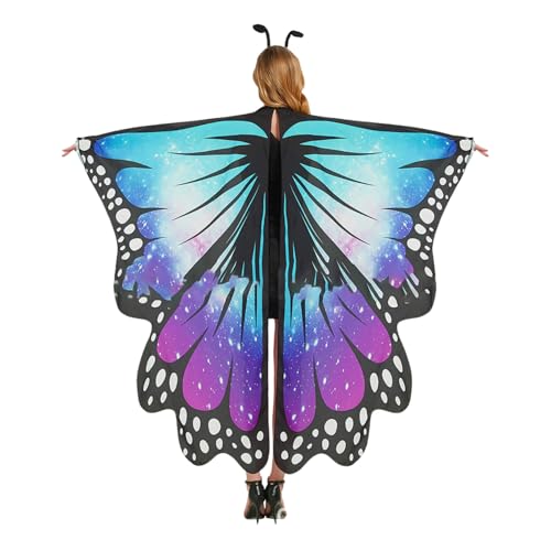 Schmetterling Umhang Erwachsene, Kostüm Damen - Fühler Schmetterlingsfühler Übergröße Cosplay Cape Elegant Fasching Große Größen Haarspangen 3 Stück Set Karneval Flügel Haarband Stirnband Fastnacht