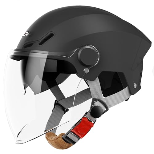 Retro Style Motorradhelm Jethelm Offenem Scooter Helm Mit Doppelvisier 3/4 Motorrad Halbhelme DOTECE Zertifiziert Tragbar Halbschalenhelm Für Erwachsene Frauen Männer P,54-61CM