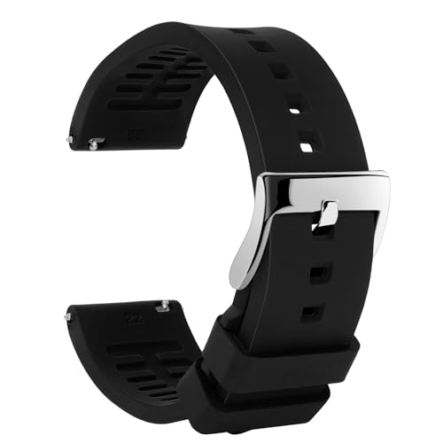 TStrap SilikonUhrenarmband Sport 22mm - Schwarz Gummi Uhr Armband Weich mit Schnellverschluss - Smartwatch Ersatzarmband für Herren und Damen - 18mm 19mm 20mm 21mm 22mm 24mm