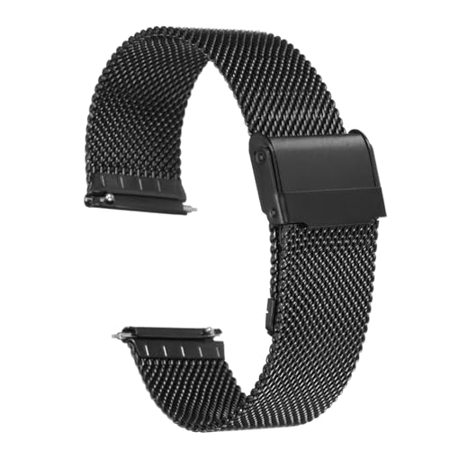 QUARKZMAN Uhrenarmband Mesh Edelstahl 22 mm Ersatz Metall Armband Edelstahlarmband mit Schnellverschluss Uhrenarmbänder Ersatzband Verstellbarer Gütelschnalle für Damen Herren, Schwarz