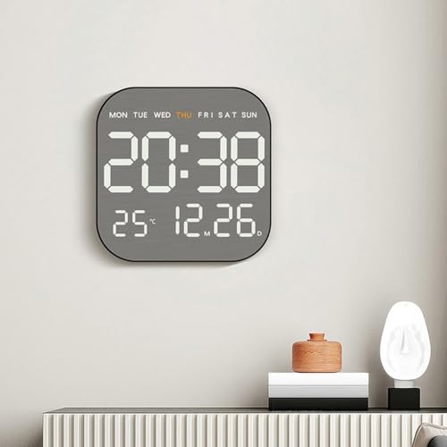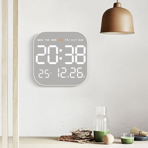 Digitale Wanduhr, elektronischer Wandkalender mit LCD-Bildschirm, Temperatur, automatische Dimmung, Helligkeitseinstellung, Wandmontage, Uhren für Zuhause (weiß)