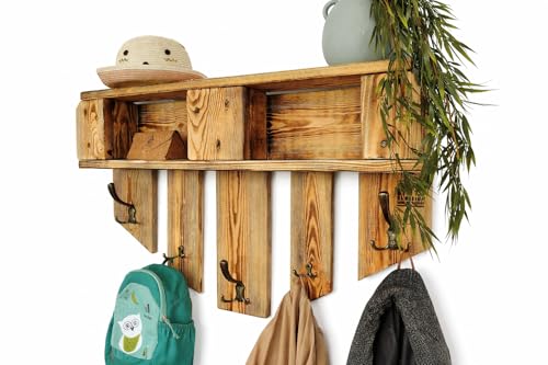 Garderobe Holz mit Ablage Wand-Garderobe aus Paletten mit 5 Kleiderhaken Hutablage Wandregal Eingangsbereich Palettengarderobe Palettenmöbel
