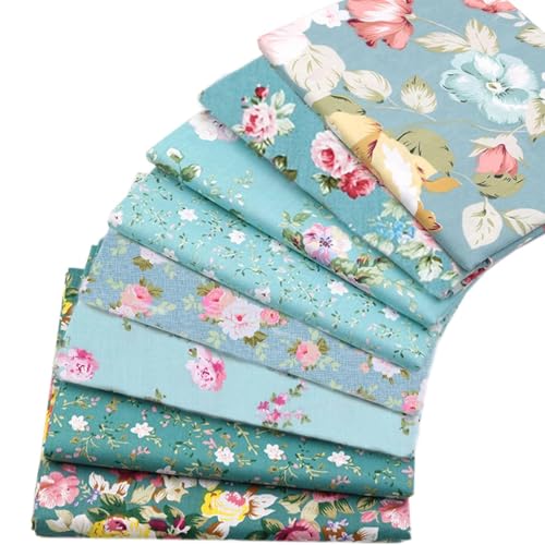 NEUJUS 8 Stück Baumwollstoff 50 x 50 cm Stoffpaket – Patchwork Stoffe Paket zum Nähen & Quilten, DIY Stoffreste Baumwollstoffe Meterware, Stoff Quadrate verschiedene Muster (8 Stück-Minze Floral Mix)