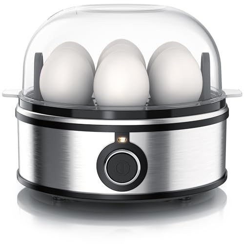 Arendo - Eierkocher für 1 bis 7 Eier - 3 Härtegrade wählbar - aus Edelstahl - Warmhaltefunktion - BPA-Frei & Spülmaschinenfest - Einsatz für pochierte Eier, Omelette-Einsatz