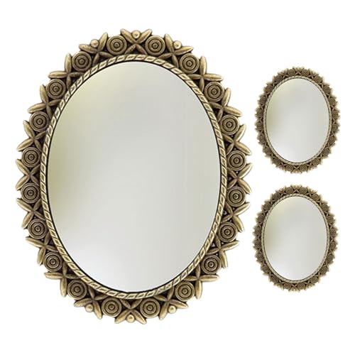 VILLFUL 3stücke Vintage-Spiegel Gerahmter Mini-Spiegel Miniatur-Accessoires Puppenhaus-wandspiegel Kleiner Ovaler Wandspiegel Viktorianischer Puppenhaus-Spiegel Kleiner Hängespiegel Ovale