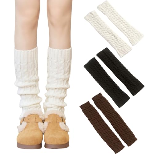 FangBoJie Stulpen Damen Leg Warmers Beinwärmer Frauen Mädchen Winter Beinstulpen Damen Stricken Legwarmers Knie Hoch Stulpen Trachtenstulpen Set Strick für Winterwärmer (3, Schwarz,Weiß,Kaffeebraun)