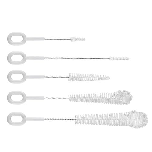 Spülbürste - Reiniger | Flaschenbürsten Set Flexibel | Flaschenreiniger Set mit Bürsten für Gläser & Thermoskannen | 5-Teiliges Werkzeug für Saftpressen Strohhalm & Brustpumpen Reinigung Blau Weiß