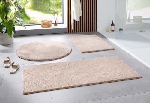 Taracarpet Badematte Uni Boho rutschfest, waschbar, Badezimmer-Teppich, Bad-Vorleger, WC Deko, Duschvorleger für Dusche und Badewannen weich und als Set kombinierbar New Beige 050x080 cm